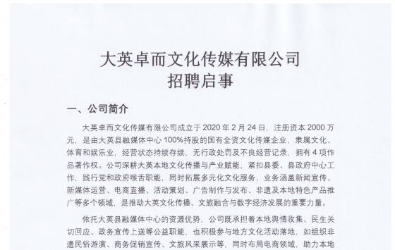 大英卓而文化传媒有限公司招聘启事